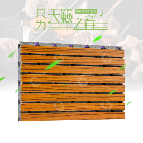 2、實現吸聲的技木原理是:一是在材料本身內形成多孔結構,達到一定的吸聲效果,其二是在成品板上通過開槽、鉆孔形成穿孔板共振結構,達到吸聲效果。并配合吸聲無紡布進一步提升吸音效果。